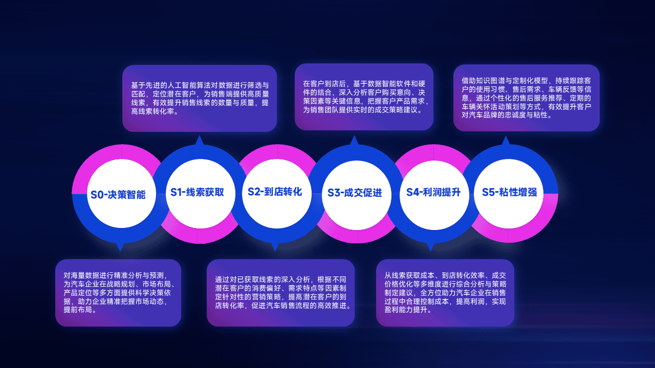 通过拓宽潜在客户来源、、、、优化线索分配并提高到店转化率,,,,以增强销售效率。。。同时,,,利用线索数据不断优化分析模型,,,有效提升转化率,,扩大营销影响力。。
